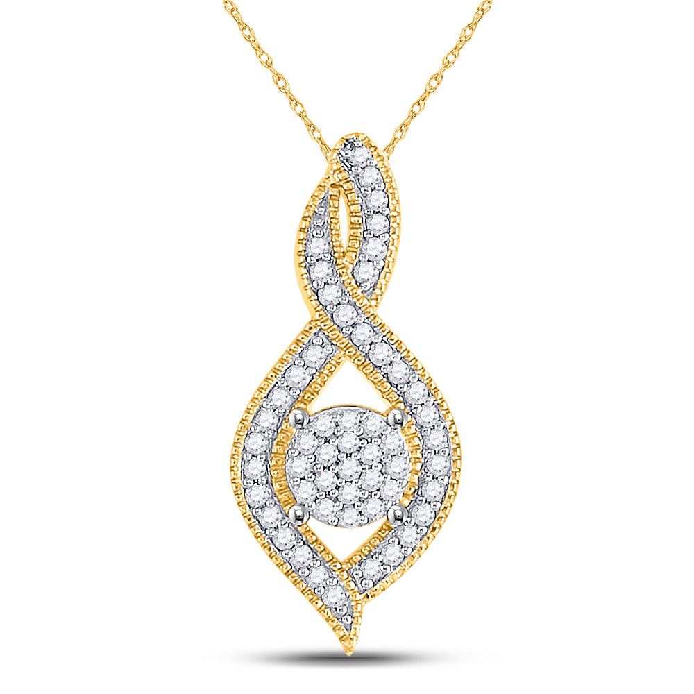 10kt Yellow Gold Womens Round Diamond Nested Cluster Pendant 1/6 Cttw