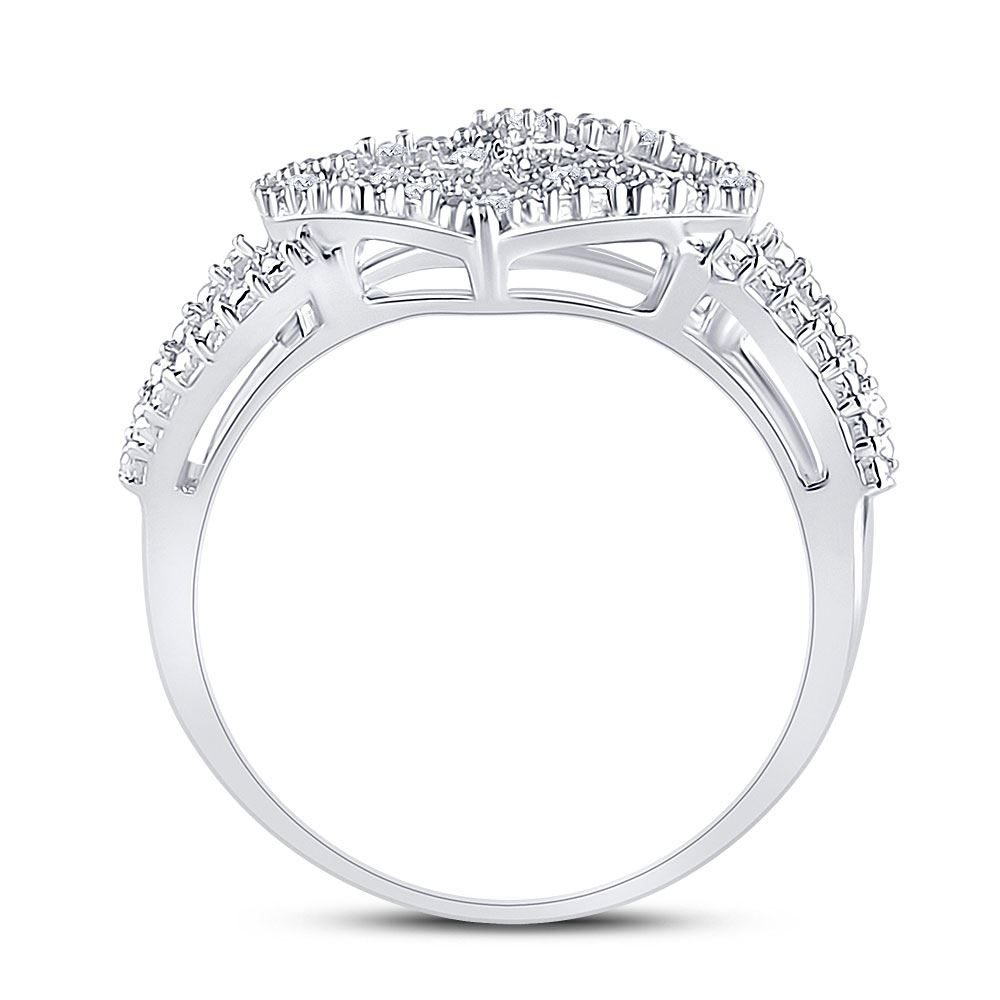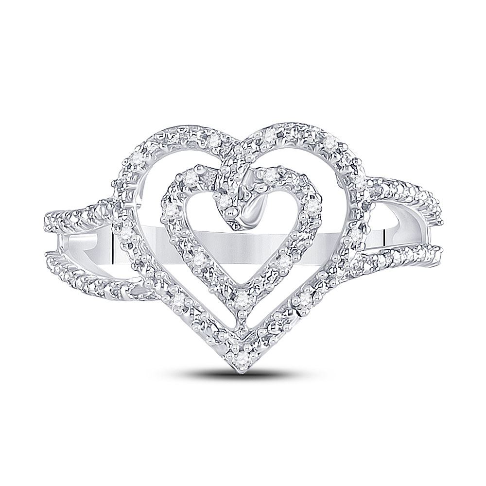 Sterling Silver Womens Round Diamond Nested Double Heart Ring 1/20 Cttw