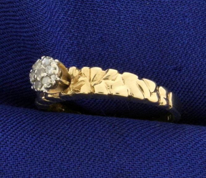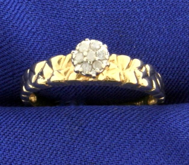 In 10k yellow gold. Containing seven high quality .01ct diamonds, H color/I clarity. Size 7 1/4. 2.0g.