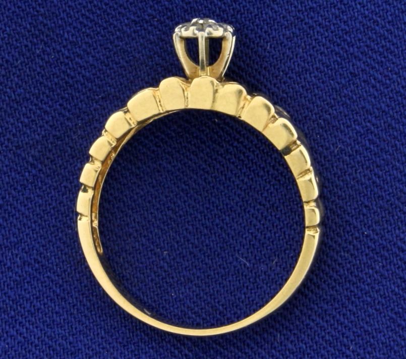 In 10k yellow gold. Containing seven high quality .01ct diamonds, H color/I clarity. Size 7 1/4. 2.0g.
