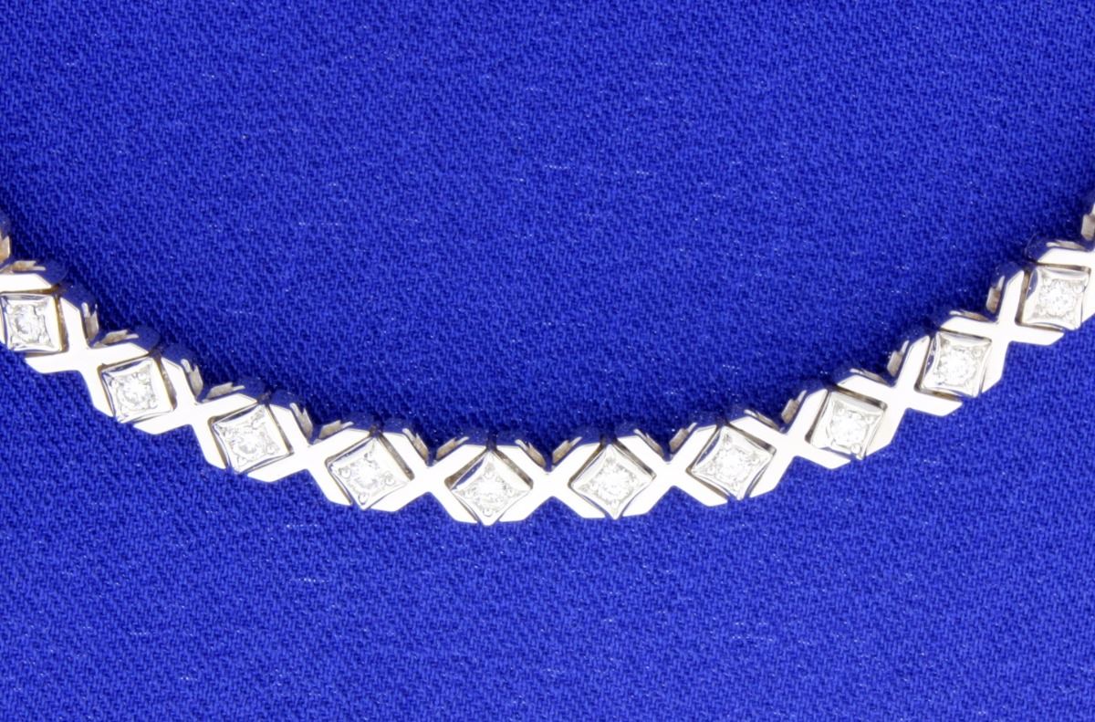 This fantastic Diamond XX Kisses Omega necklace is set in tutone 14k yellow and white gold. There is 3/4 of a carat of brilliant cut, clarity VS-SI and color F-G, diamonds…they are very high quality. The necklace measures 17" and offers a stunning look! 29.3g