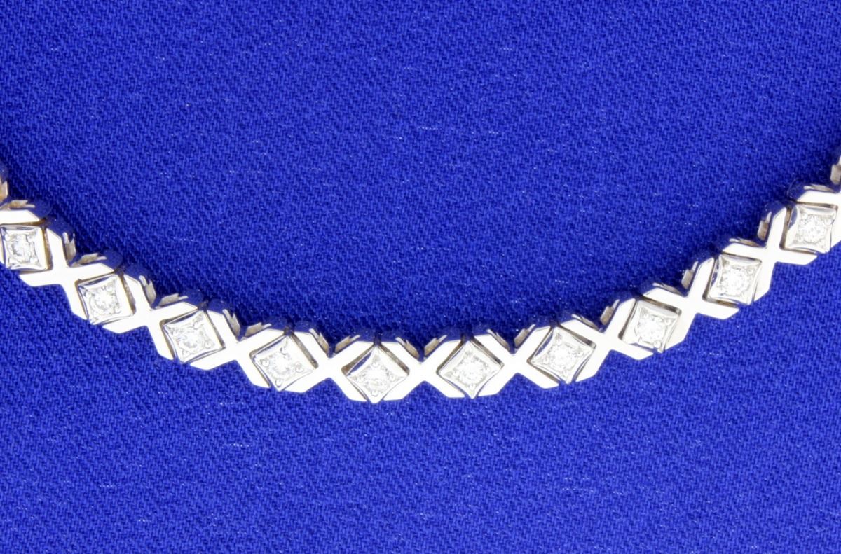 This fantastic Diamond XX Kisses Omega necklace is set in tutone 14k yellow and white gold. There is 3/4 of a carat of brilliant cut, clarity VS-SI and color F-G, diamonds…they are very high quality. The necklace measures 17" and offers a stunning look! 29.3g