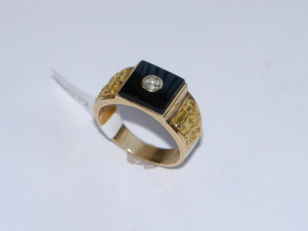 Total Retail $7,890 14Kt & 24Kt Yellow Gold (#1) Retail Price $7,890 14Kt & 24Kt Yellow Gold Diamond & Onyx Natural 24Kt Nugget Men's Ring