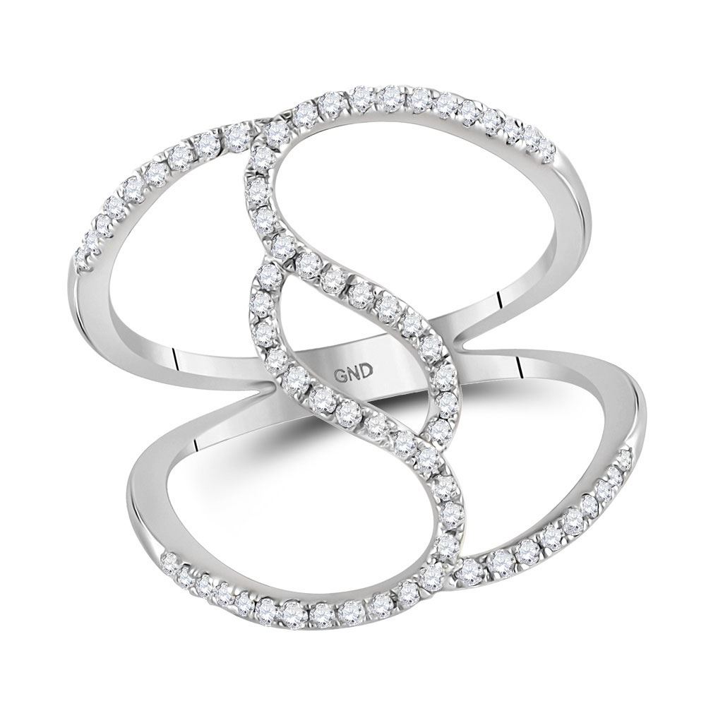 REF-20G0M - SKU: GD112428 ---- Diamond Open Strand Wide Band Ring 1/3 Cttw 10kt White Gold
