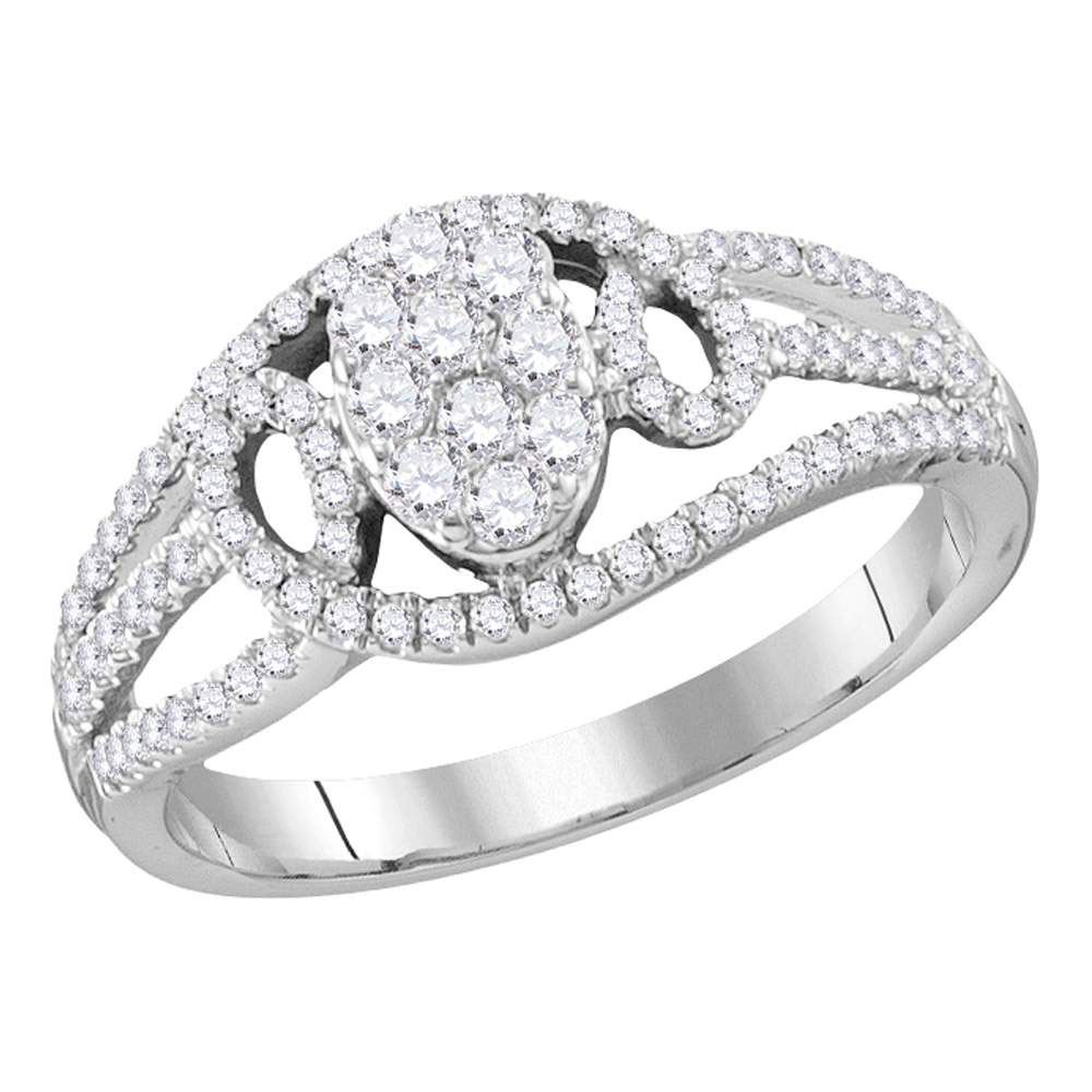 10kt White Gold Womens Round Diamond Oval Cluster Ring 1/2 Cttw