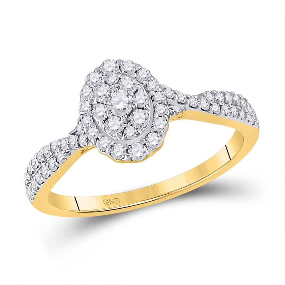10kt Yellow Gold Womens Round Diamond Oval Cluster Ring 1/2 Cttw