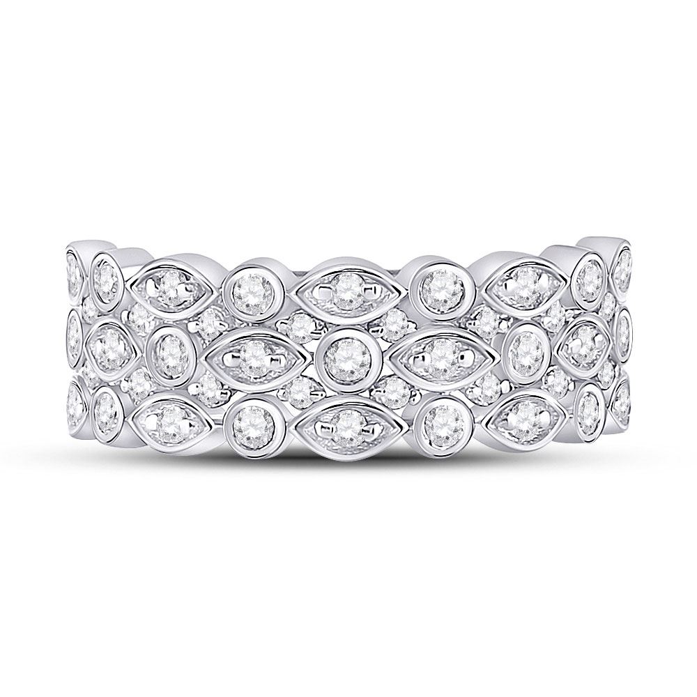 14kt White Gold Womens Round Diamond Oval Dot 3-Row Fashion Ring 3/4 Cttw