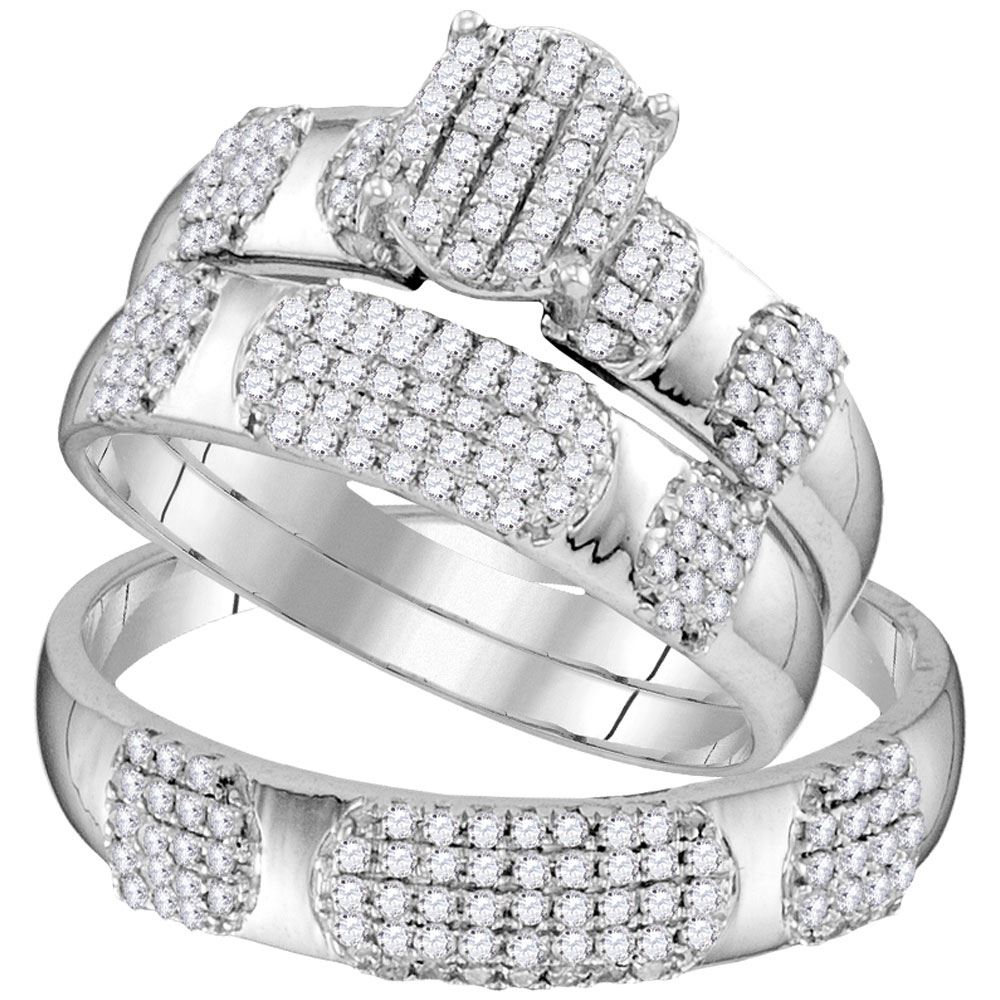 10kt White Gold His Hers Round Diamond Oval Matching Wedding Set 3/4 Cttw.