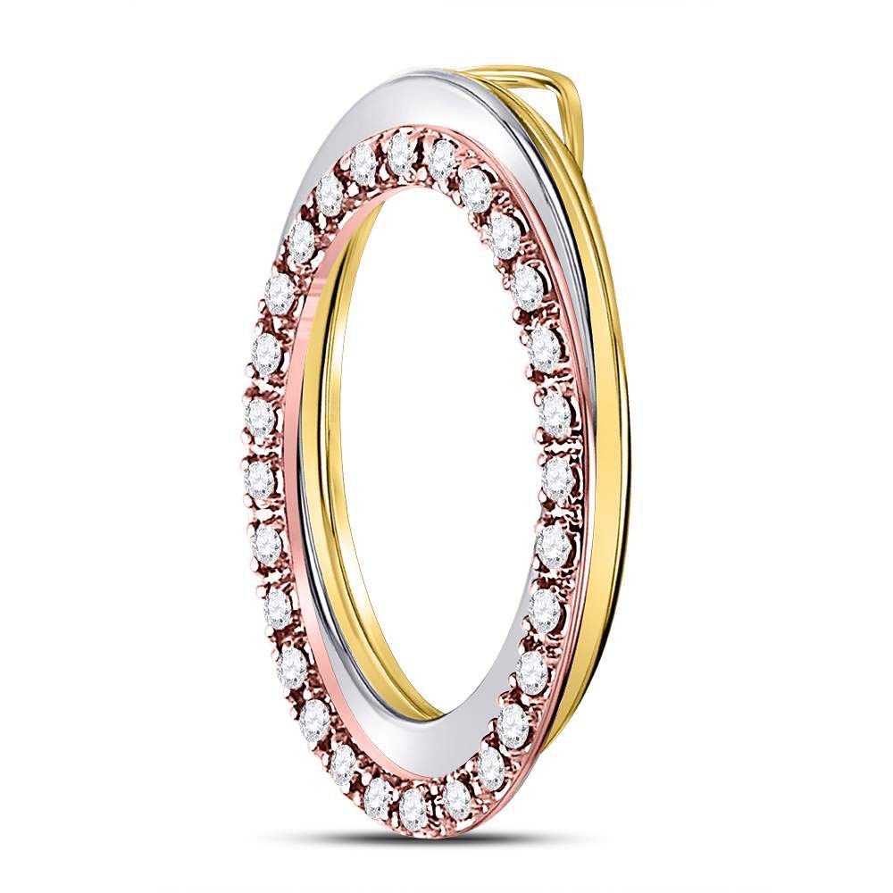 10kt Tri-Tone Gold Womens Round Diamond Oval Pendant 1/6 Cttw