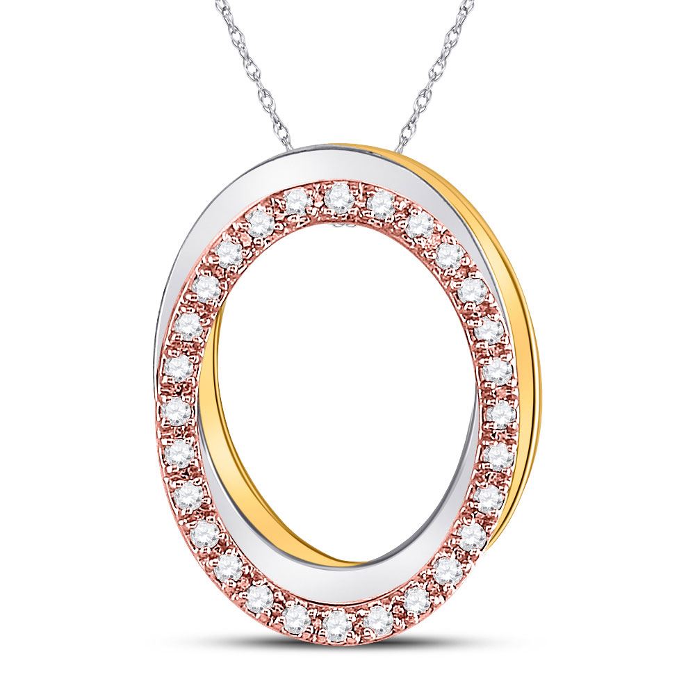 10kt Tri-Tone Gold Womens Round Diamond Oval Pendant 1/6 Cttw