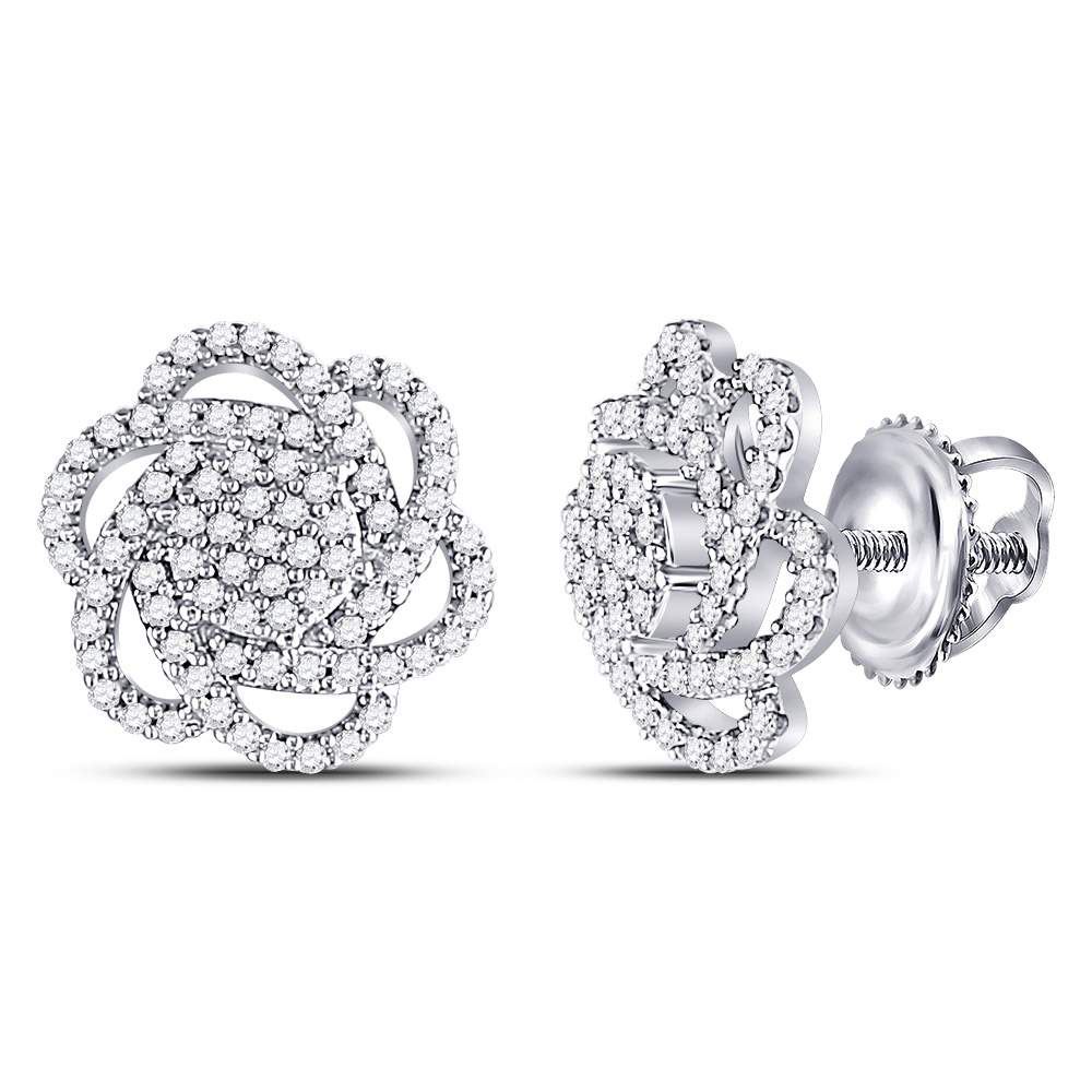 10kt White Gold Womens Round Diamond Pinwheel Cluster Earrings 3/8 Cttw