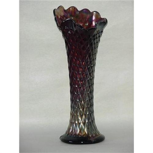 A Northwood carnival glass "diamond point" vase, 11" tall, purple iridescent. Condition is very good, no chips or cracks.