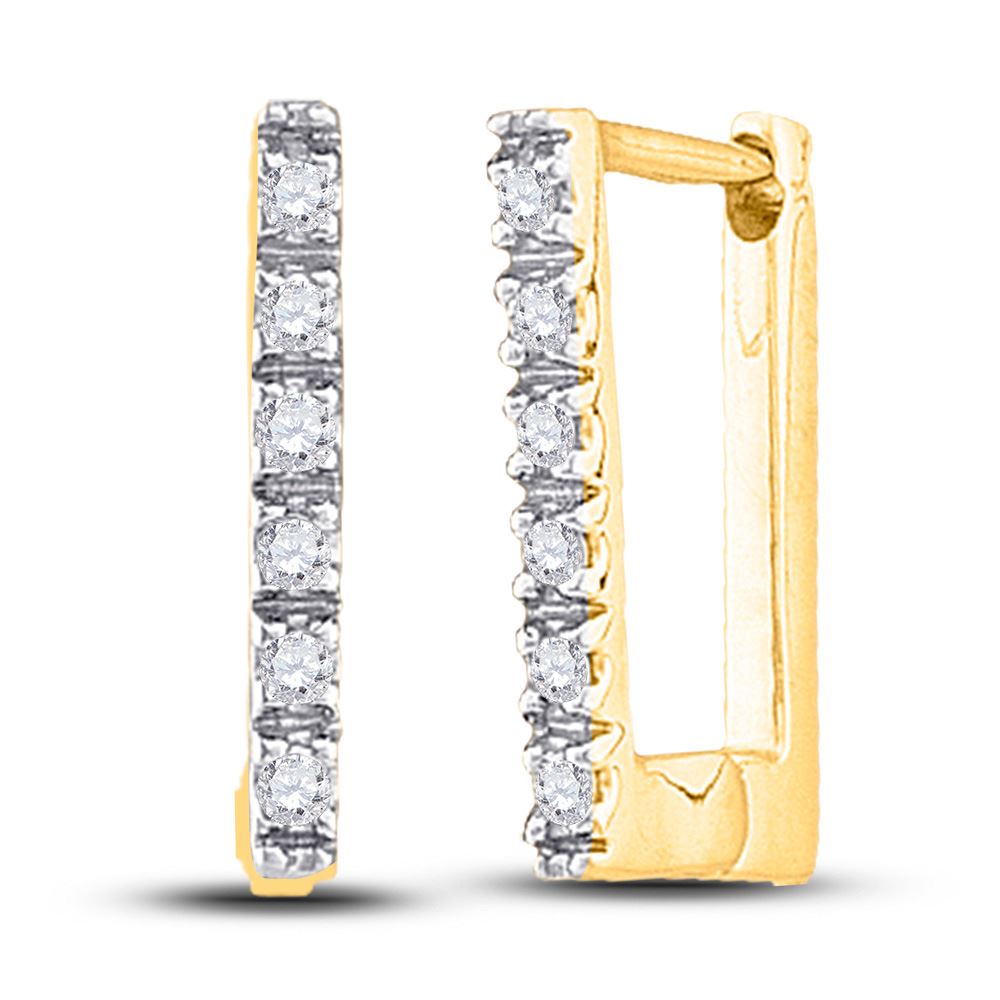 10kt Yellow Gold Womens Round Diamond Rectangle Notched-post Hoop Earrings 1/20 Cttw