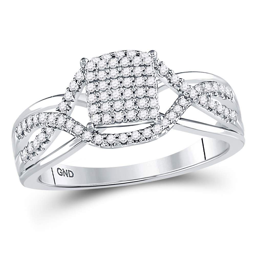 REF-25F5N - SKU: GD120823 ---- Diamond Rectangle Twist Cluster Ring 1/4 Cttw 10kt White Gold