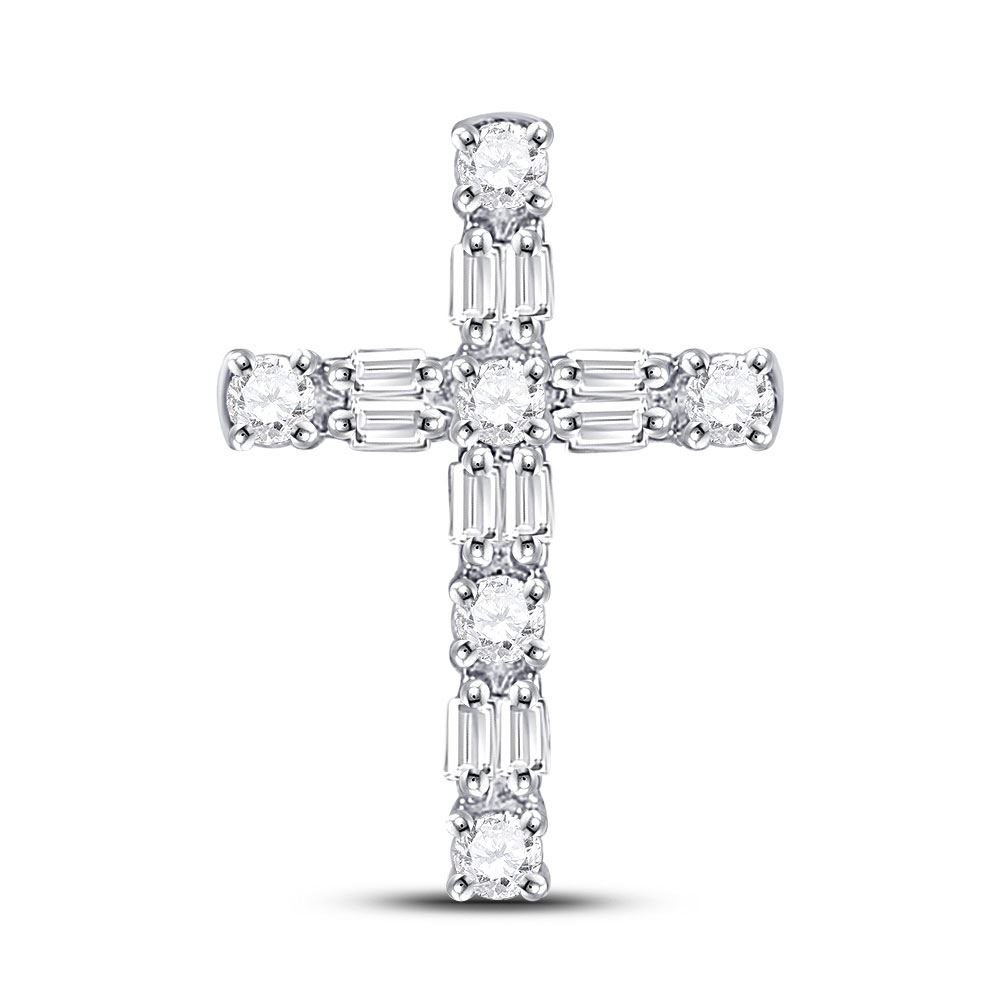 14kt White Gold Womens Round Diamond Religious Cross Pendant 1/4 Cttw