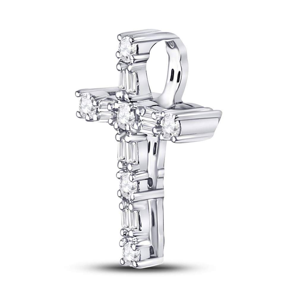 14kt White Gold Womens Round Diamond Religious Cross Pendant 1/4 Cttw