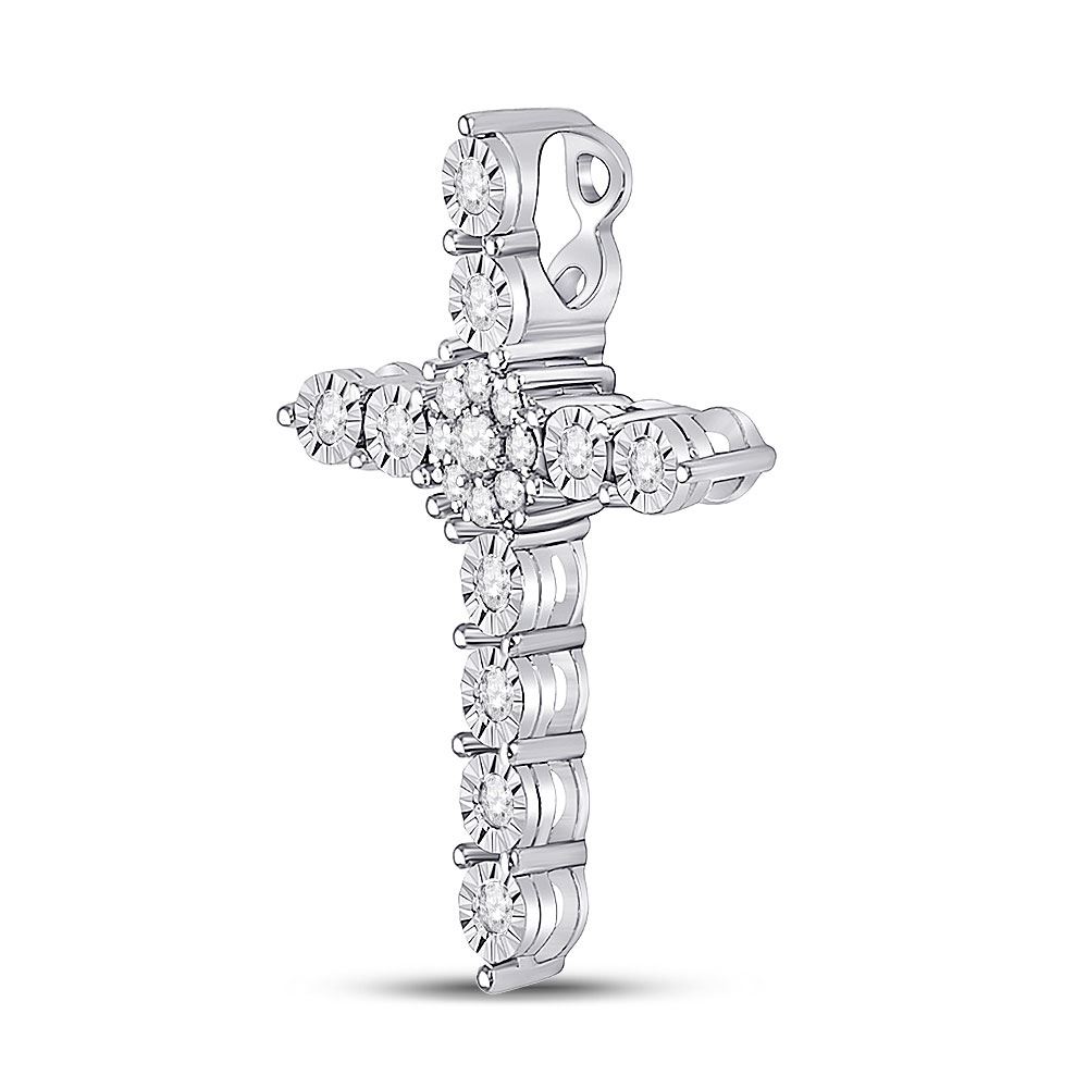 14kt White Gold Womens Round Diamond Religious Cross Pendant 1/4 Cttw