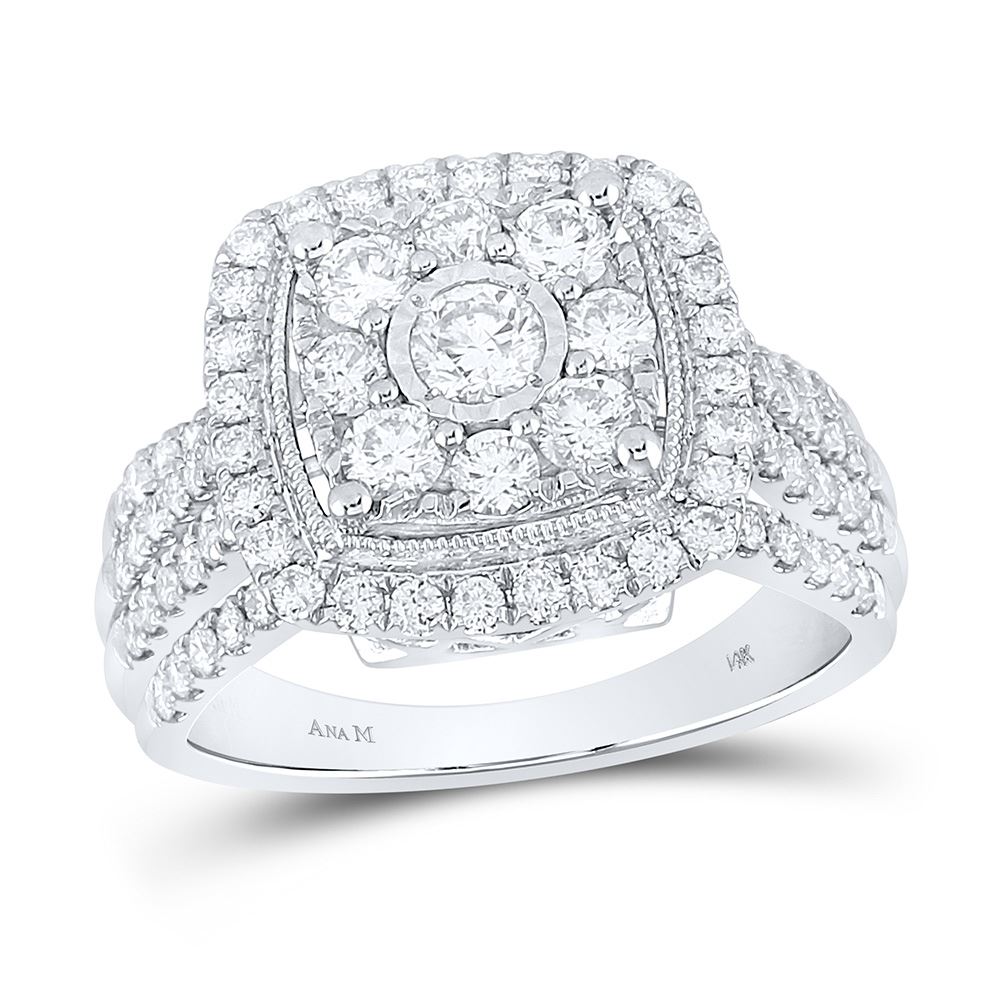 14kt White Gold Womens Round Diamond Right Hand Cluster Cushion Ring 1-1/2 Cttw