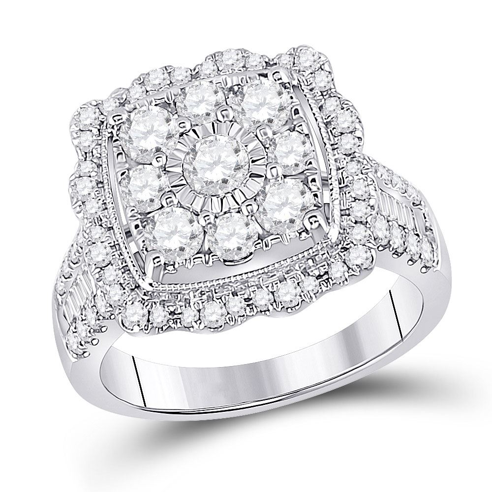 REF-177V3A - SKU: GD150581 ---- Diamond Right Hand Flower Cluster Ring 2.00 Cttw 14kt White Gold