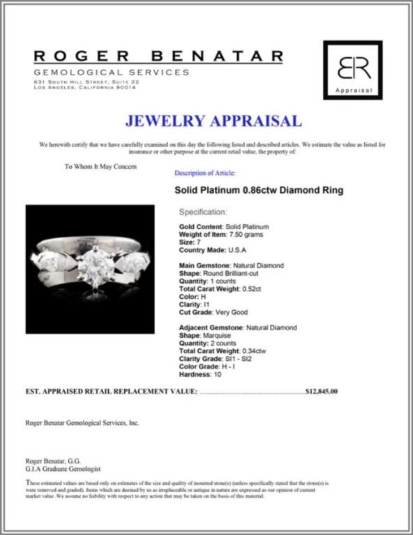 Regarding Appraised Jewelry and Loose Stones - Auctionfarm sends them out to a third party for Retail Replacement Value Appraisals, which are the most common. These types of evaluations are written for insurance needs. This would be the cost to replace the jewelry with an item of equal quality and kind, considered to be the current market price or the replacement value. This type of appraisal is done to protect you in the event of damage or loss of a valuable item. Our appraisals are conducted by independent 3rd Party appraisal firms that utilizes Certified GIA Gemologist. Appraisals should be used for verification of gemstone and/or metal weight, size, and grade only, not actual value. Appraisal value should be considered for insurance purposes only, not actual value, as price varies greatly from retail locations thru out the world. Items should not be purchased with the expectation to resell for appraisal price, or for profit.