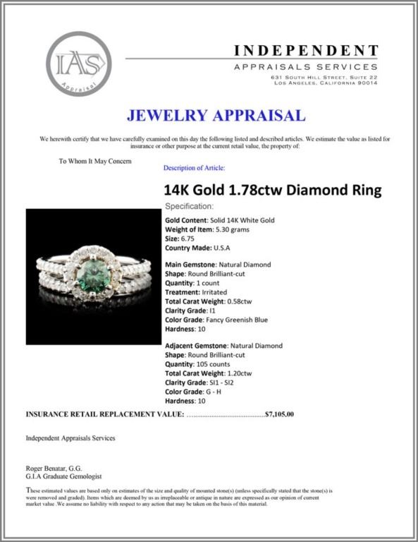 Regarding Appraised Jewelry and Loose Stones - Auctionfarm sends them out to a third party for Retail Replacement Value Appraisals, which are the most common. These types of evaluations are written for insurance needs. This would be the cost to replace the jewelry with an item of equal quality and kind, considered to be the current market price or the replacement value. This type of appraisal is done to protect you in the event of damage or loss of a valuable item. Our appraisals are conducted by independent 3rd Party appraisal firms that utilizes Certified GIA Gemologist. Appraisals should be used for verification of gemstone and/or metal weight, size, and grade only, not actual value. Appraisal value should be considered for insurance purposes only, not actual value, as price varies greatly from retail locations thru out the world. Items should not be purchased with the expectation to resell for appraisal price, or for profit.