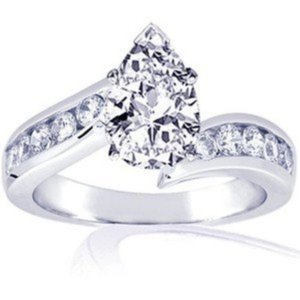 white gold 2.5 grams...14k....size 6.5; Diamond Ring 1.70 carat - SI1/SI2 - I/J....CENTER DIAMOND....pear shape.. 0.50 carat; side stones 1.20 carat;100% natural diamonds...no treatment in any way;