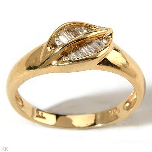 Size 7---14kt. yellow gold embraces 14 bright, baguette cut, genuine diamonds. The diamonds are approx. .45ctw. G-H in color and SI1 in clarity.