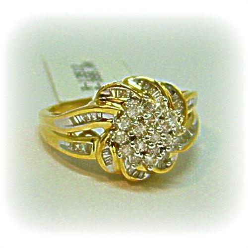 This beautiful, large, diamond ring features 1 Carat of Genuine Diamonds. Large setting creates lots of sparkle! Perfect for an engagement or anniversary. Please see specifications below.<BR><BR>Shipping Charges within the USA: $6 for the first item and $3 for each additional item; Within Canada or Australia: $15.00 for the first item and $3 for each additional item; Within Europe: $25 for the first item and $3 for each additional item.<BR>Insurance is included in these charges<BR><B>We ONLY ship to the USA, Canada, Australia and Europe. <BR><BR>Merchandise is guaranteed 100% to your satisfaction. If you DON'T LOVE this item, simply return it for a complete refund of your purchase price. BONDED SELLER.<BR><BR>Shipping Charges in the USA: $6 for the first item, $3 for ea. additional; Within Canada/Australia: $25 for the first item, $3 for each additional; Within Europe $45 for the first item, $3 for each additional.<BR><BR>Ring Size: will size between a size 6.5 to a size 8.5, at no additional charge<BR><BR>Ring Weight: 4 grams<BR><BR>Diamond Weight: 1 Carat Total Weight<BR><BR>Setting: Solid 10 Karat Yellow Gold<BR><BR>Diamond Clarity: I1/I2 <BR><BR>Diamond Color: H-I