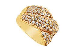Several brilliant-cut round are prong-set in a dramatic X design. Made in 14K yellow gold this ring has a total weight (TDW) of 2.00 ct.