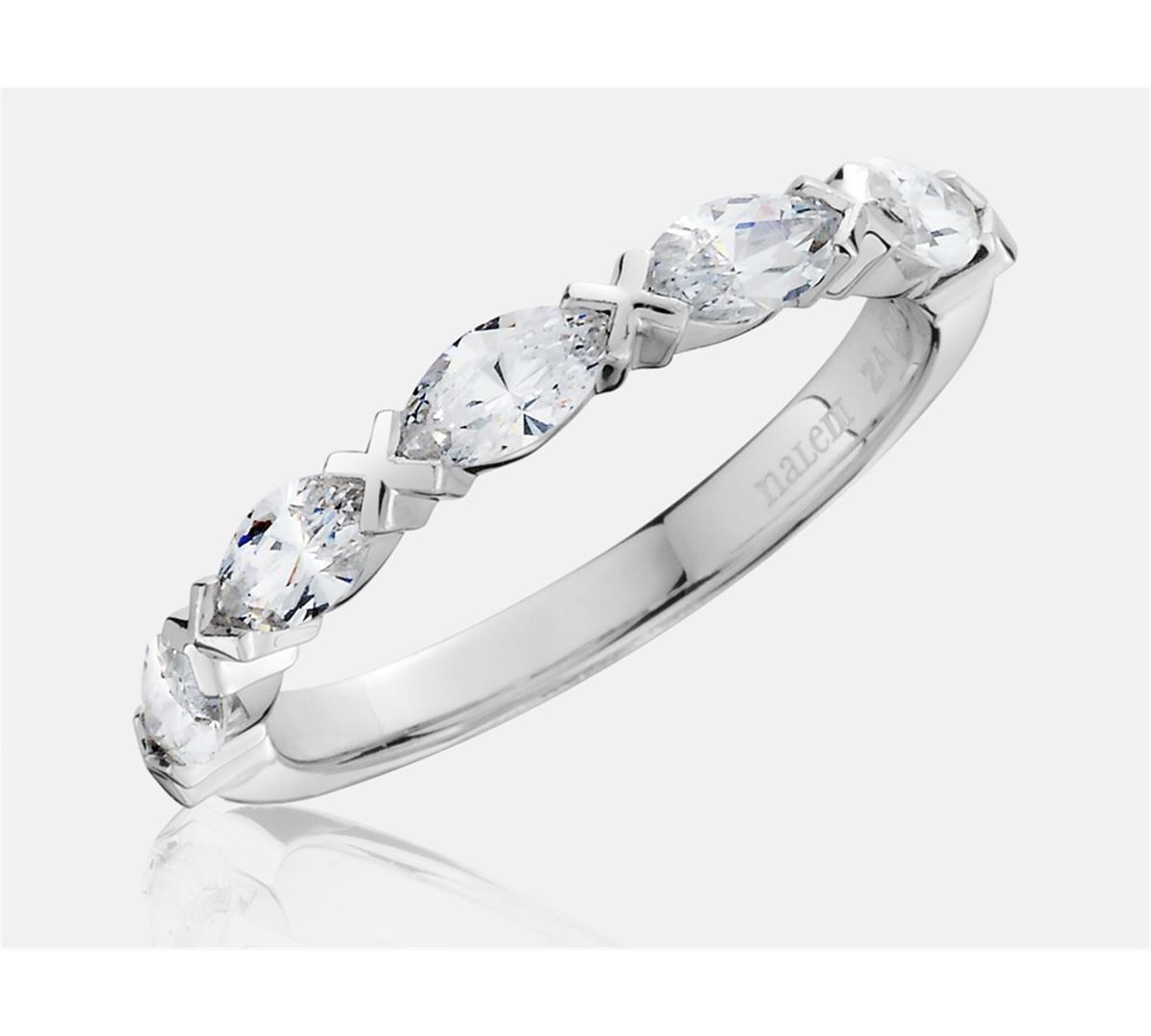 14K White gold wedding band. Featuring 7- 0.187 cts F/G SI1/2 marquise.