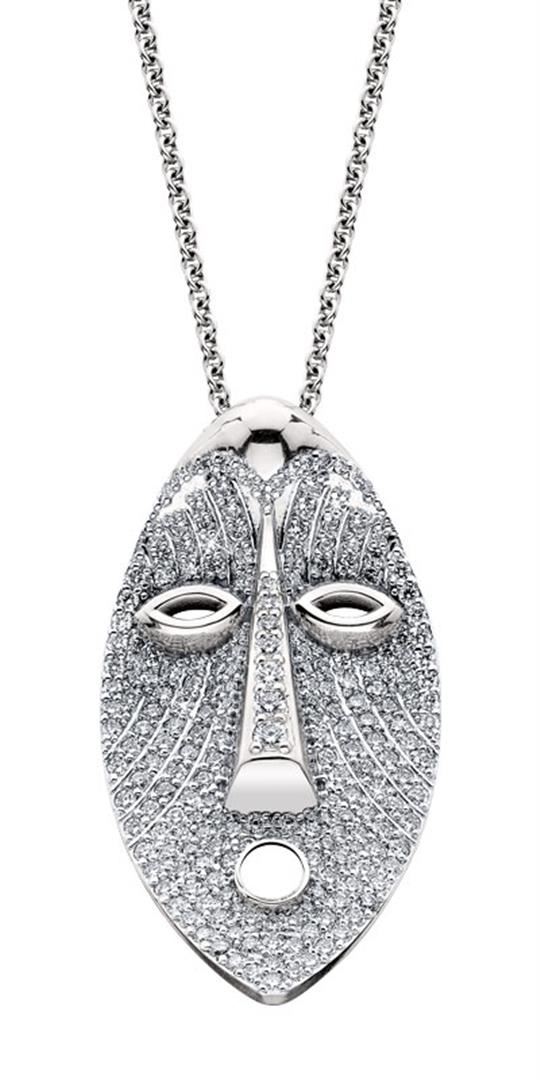 14K White gold crescent mask pendant covered in G/H SI1 diamonds.