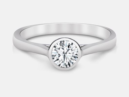 14K two toned white engagement ring. Featuring a 0.57cts K SI1 GIA round brilliant bezel set in yellow gold.