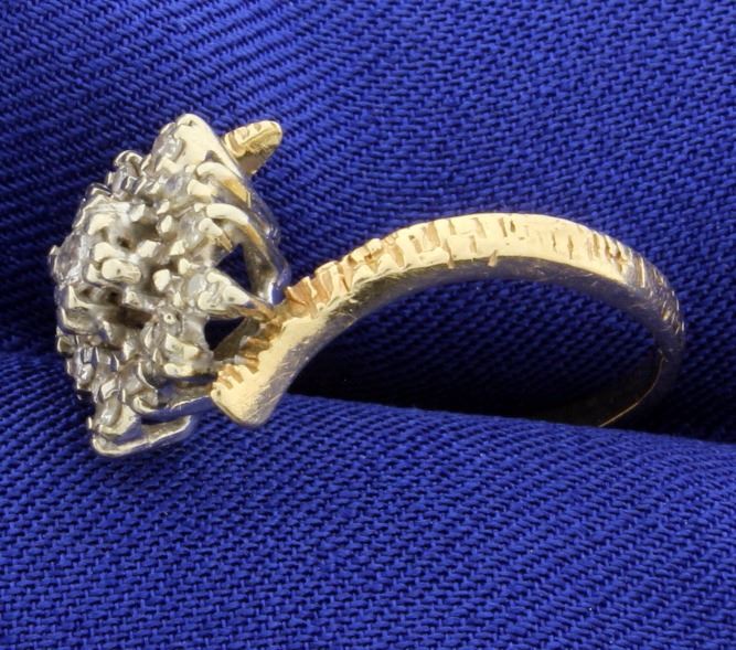 In 14K yellow gold, there are twelve .01ct and one .08ct round diamonds with excellent color and clarity. Size 8 3.6g