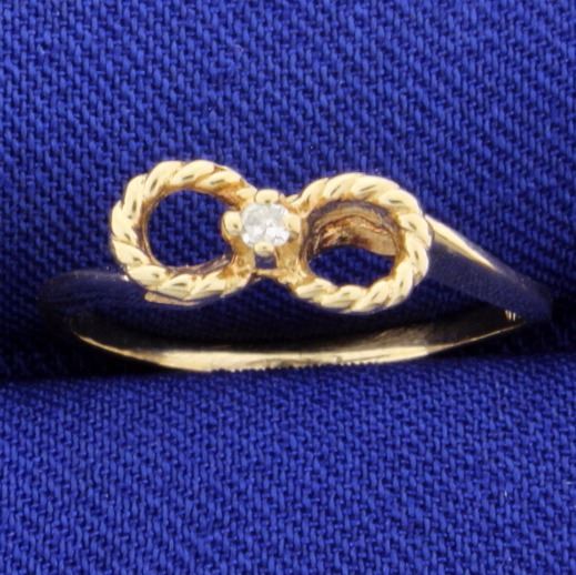 In 10K yellow gold, there is a .02ct round diamond. Size 5 1/2            1.4g