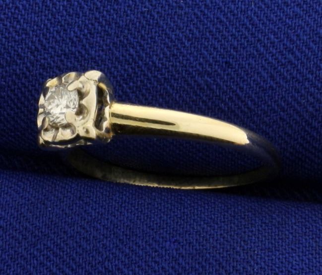 In 14K Yellow and White Gold. Contains a high quality .2ct Round Brilliant Diamond, VS clarity/G color. Size 6 3/4. 2.1g