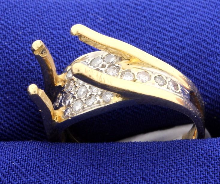 Lovely 14k diamond ring remount with 22 brilliant cut diamonds that total a 1/2 carat. The setting will hold a 8mm round or a 6mm x 8mm oval diamond or any stone of your choice! The setting is in great condition and the smaller diamonds will definitely enhance whatever stone you decide to put in! 5.1g Size 6 1/2
