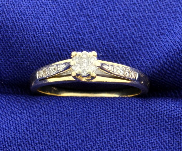 The total diamond weight is 1/5 carat and clarity is SI-I1. Color H-I-J. Size 7. the mounting is 14k. 2.9g