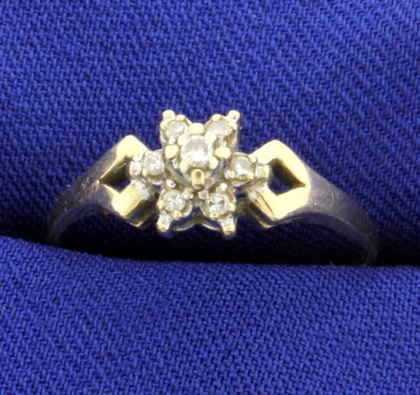In 10K yellow gold it contains one .03ct diamond & six .01ct diamonds. Size 7 3/4 1.6g
