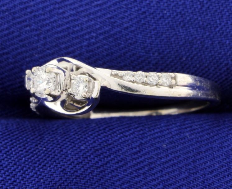 This gorgeous 10k white gold diamond ring has 11 brilliant cut diamonds! The center diamond is approximately 0.18 carats and the other 10 diamonds total approximately 0.32 carats--SI-I1 clarity and G-H-I color. Size 9 3.1g