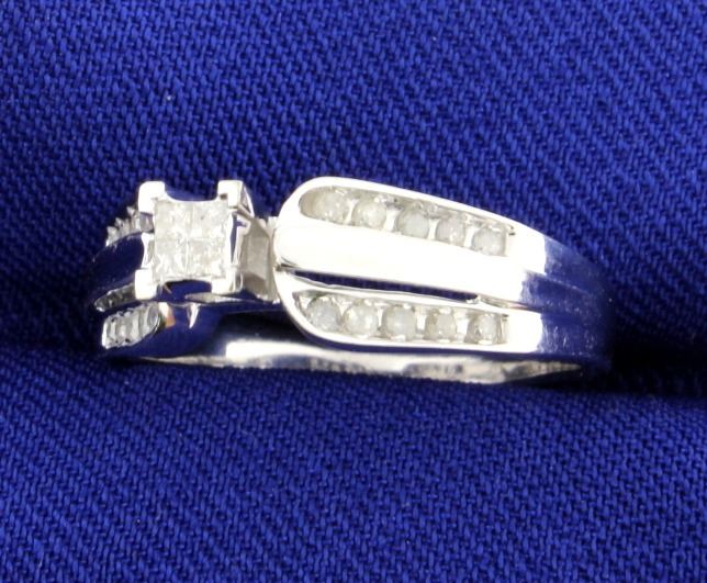 10k white gold ring with 24 brilliant cut and princess cut diamonds that total approximately a 1/3 of a carat, I1-2 clarity and H-I-J color. Great style. Size 7 2.5g