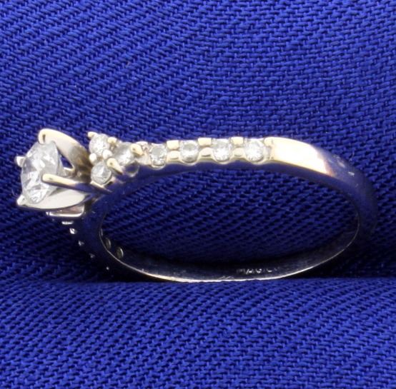 14K white gold, the center diamond is .2ct, surrounded by 14-.01ct diamonds. All I-1 clarity, F color. Size 4 1/4 1.7g