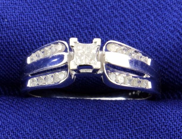 10k white gold ring with 24 brilliant cut and princess cut diamonds that total approximately a 1/3 of a carat, I1-2 clarity and H-I-J color. Great style. Size 7 2.5g