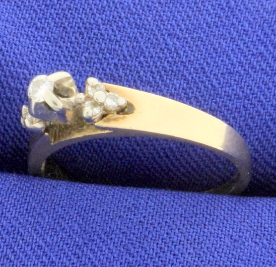 In 10K yellow gold it contains one .04ct diamond & six 1/2 point diamonds-all with SI clarity & I color. Size 5 2.2g