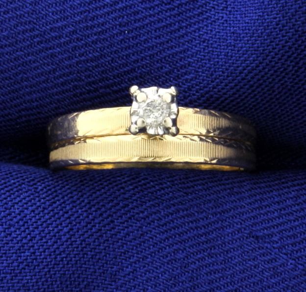 This ring is 14K yellow gold and contains a .08ct diamond. Size 6 2.6g