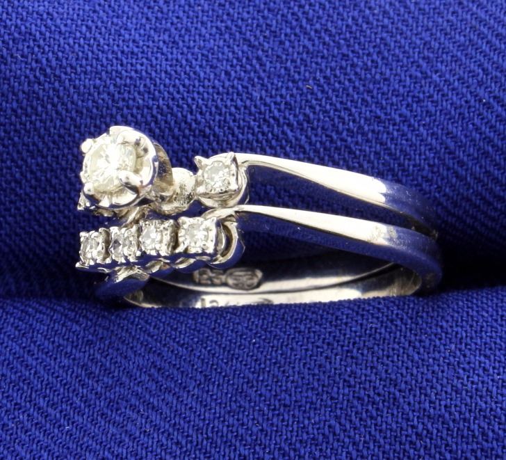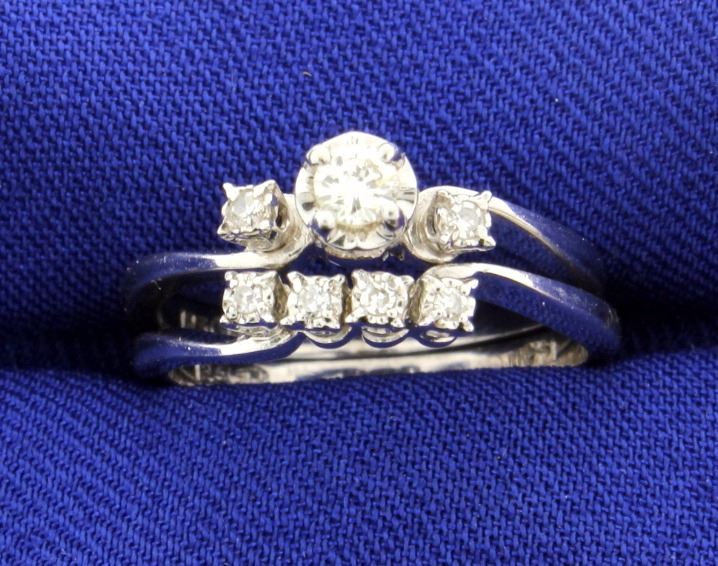 This beautiful diamond engagement set is 14k white gold and holds a 1/4 carat of SI clarity and H color diamonds! Two separate rings. Size 6 4.0g