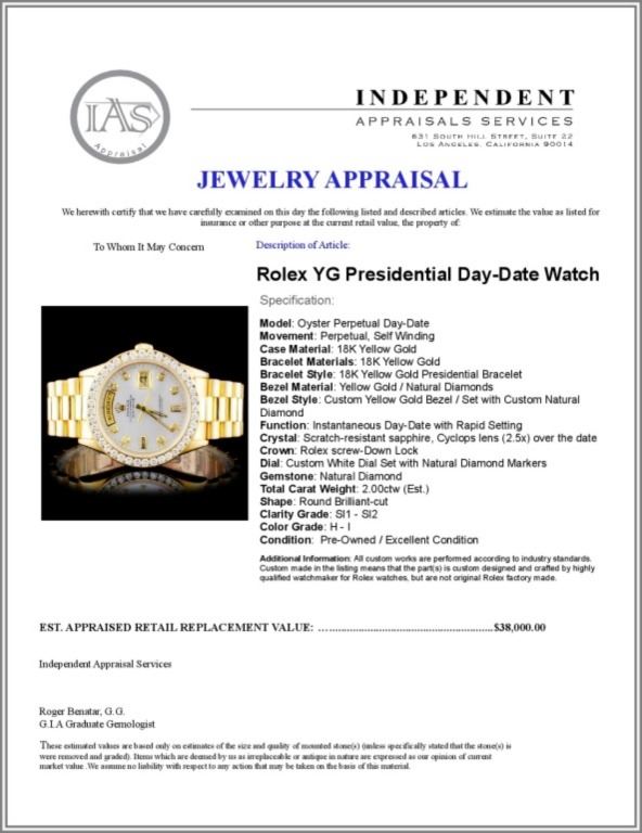 Regarding Appraised Jewelry and Loose Stones - Auctionfarm sends them out to a third party for Retail Replacement Value Appraisals, which are the most common. These types of evaluations are written for insurance needs. This would be the cost to replace the jewelry with an item of equal quality and kind, considered to be the current market price or the replacement value. This type of appraisal is done to protect you in the event of damage or loss of a valuable item. Our appraisals are conducted by independent 3rd Party appraisal firms that utilizes Certified GIA Gemologist. Appraisals should be used for verification of gemstone and/or metal weight, size, and grade only, not actual value. Appraisal value should be considered for insurance purposes only, not actual value, as price varies greatly from retail locations thru out the world. Items should not be purchased with the expectation to resell for appraisal price, or for profit.