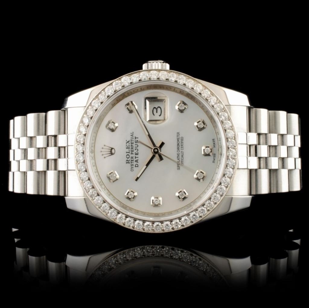 Dial: *Custom White MOP DateJust Jeweled Dial