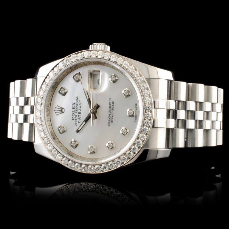 Dial: *Custom White MOP DateJust Jeweled Dial