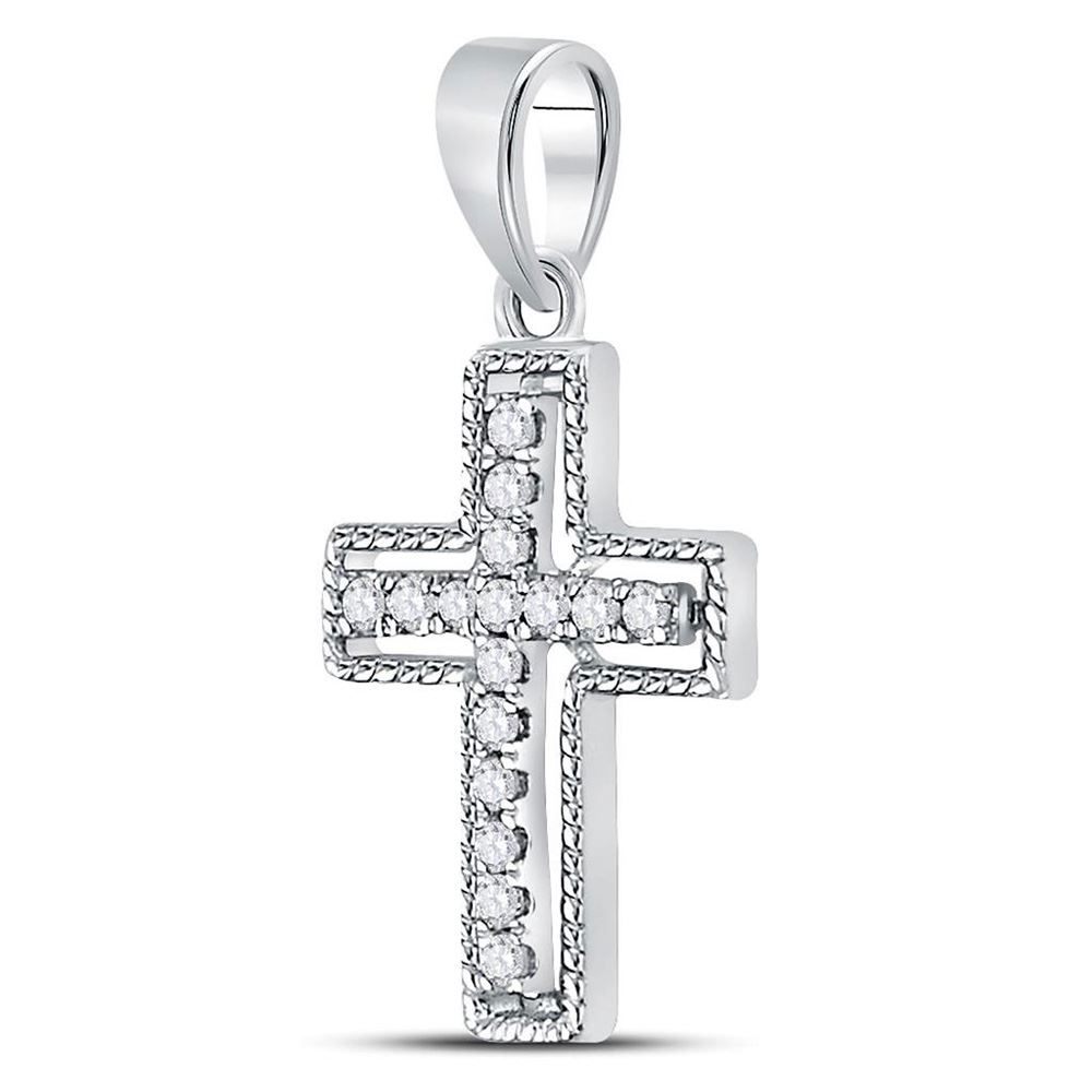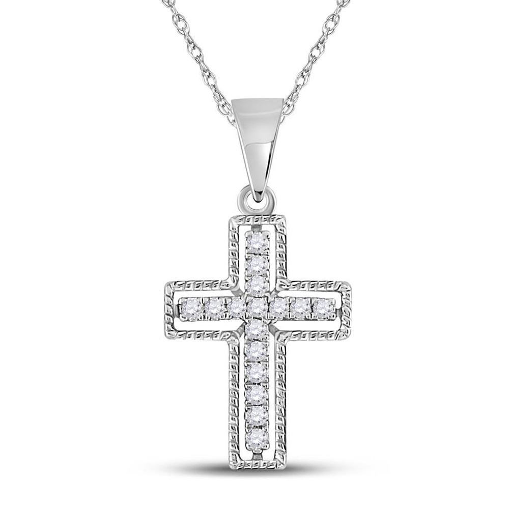 10kt White Gold Womens Round Diamond Roman Cross Pendant 1/10 Cttw