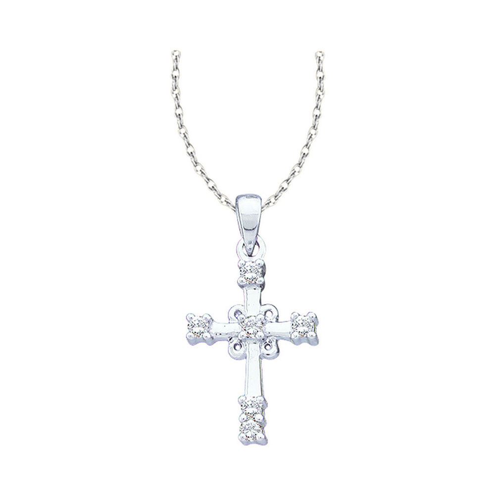 REF-10F9N - SKU: GD15299 ---- Diamond Roman Cross Religious Pendant 1/10 Cttw 10kt White Gold